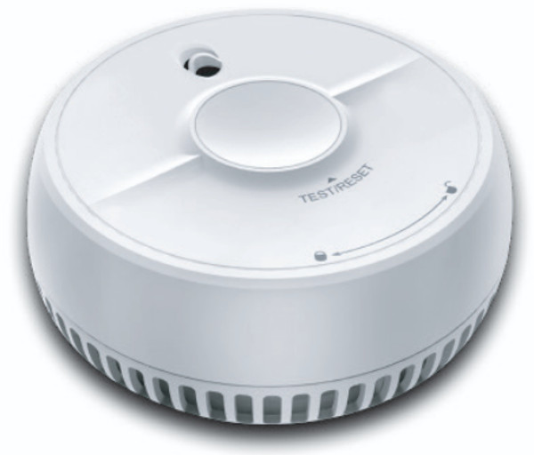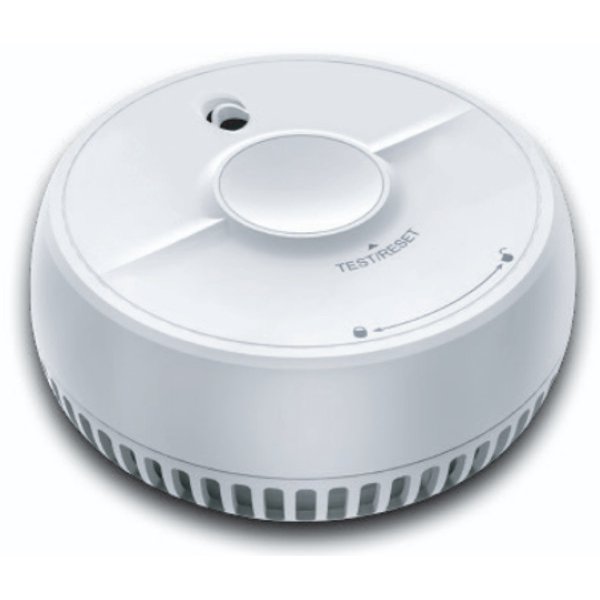 Rookmelder - optisch - levernsduur 10-jaar - blokbatterij 9 VDC - zelfvervangbaar - opbouw - kunststof - wit - grote test en pauze knop - 89.9 x 35.2 mm (lxd) - 85 dB - 0.113 kg - plafond