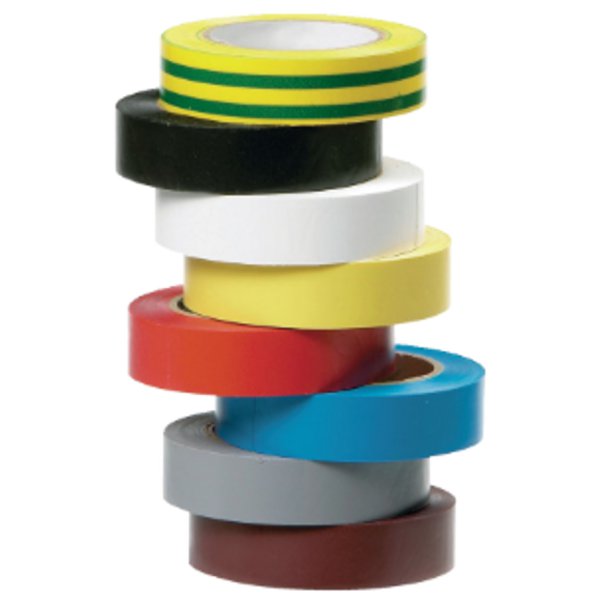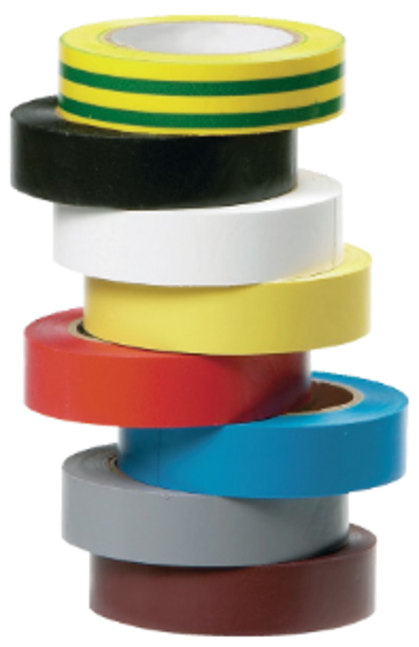 Set tape rollen- vinyl - krachtig - 8 kleuren - lengte 20 m - breed 19 mm - dikte 0.18 mm - extreme temperatuur - elektrische toepassing - kunstrubber - bestendig tegen: UV, water, olie, zuur, chemisch - vlamvertragend - zelfdovend - loodvrij - zwart