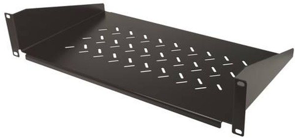 Legbord - 19-inch - 2HE / 2U - metaal - max 20 KG - zwart (RAL9005) - voorzijde paneel 8,90 cm - bruikbaardeel: breed 44 cm - diep 25 cm