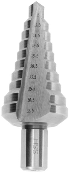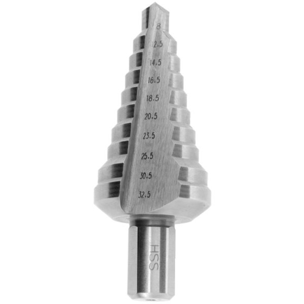 Handige stappenboor om geboorde gaten net iets ruimer te maken dan met je boortje lukt. Past op de schroeftrol met een 13 mm boorkop. Voor het boren van gaten in plaatmateriaal en kunststof niet dikker dan 4 mm. Samen met gebruik van boorolie kan de levensduur aanzienlijk verlengen.