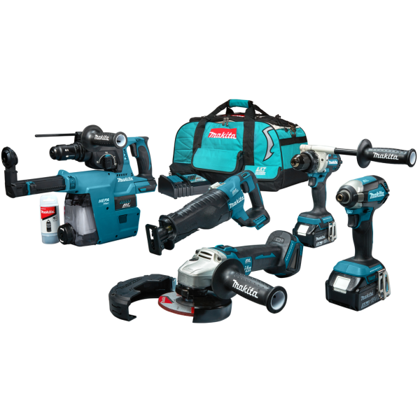 Top set! - LXT serie - brushless - 5 machines - combiset - snoerloos - professioneel - gereedschaptas - recipro - combihamer - slijptol - slagtol - boortol / schroeftol - stofvrij - HEPA - 2x 18V / 5Ah accu - snellader - DC18RC - BL50B - DDF486 - DTD153 - DGA504 - DJR187 - DHR243 - DX07