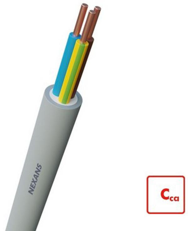 Halogeenvrij - low smoke zero halogen - moeilijk brandbaar - grijs - geleiderdoorsnede 3x2.5 mm2 - diameter 11.6 mm - aderkleur blauw, bruin en geel/groen - gewicht 0.25 kg/m - massief - koper - temperatuur -20+80 °C - cca - spanning tot 1000 V - DoP 1000349-bebu
