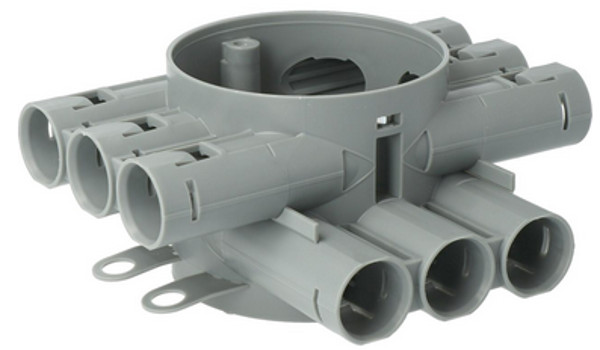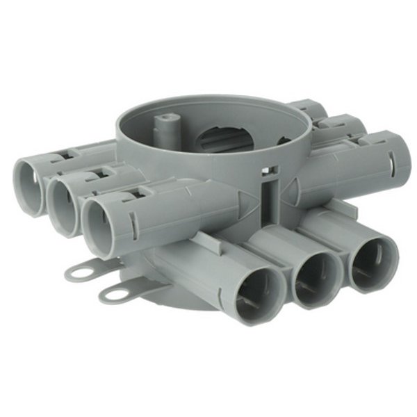 Centraaldoos - plafonddoos - inbouwdoos - verbindingsdoos - kunststof - koppelbaar - grijs - diameter 76 mm - diep 62 mm - 12x tuit 16/19 mm - buisvergrendeling - halogeenvrij - exclusief deksel - wanddikte 9.5 - 15 mm - IP20