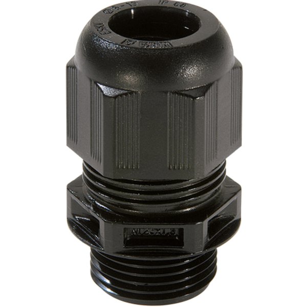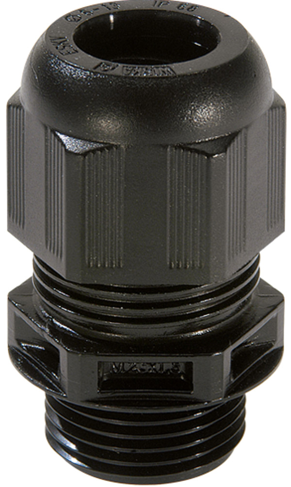 Wartel afmeting M25x1.5 mm - kunststof - zwart (RAL9005) - halogeenvrij - stofdicht - waterdicht - trekontlasting - IP68 - lengte schroefdraad 10 mm - kabeldikte 9 t/m 17 mm - steeksleutel 29 (zeskant 32 mm) - temperatuur -40+100 °C