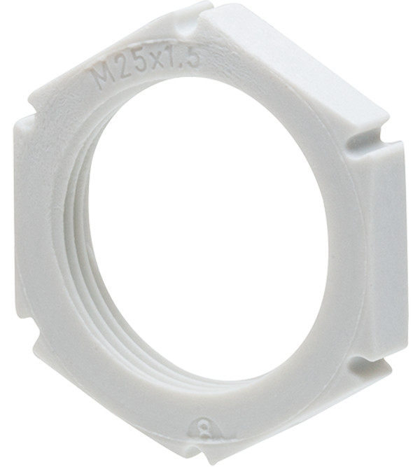 Wartelmoer afmeting M25x1.5 mm - polyamide - grijs (RAL7035) - dikte 6 mm - slagvast - halogeenvrij - steeksleutel 29 - temperatuur -40+100 °C