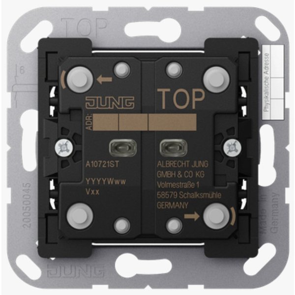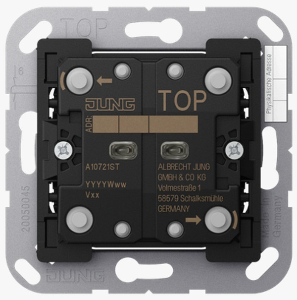 KNX schakelaar - tweevoudig - tast bediening - aan/uit - dimmen - exclusief schakelwip - benodigde kabel EIB-Y (St) Y 2x2x0,8 - ETS familie vanaf versie 5 - inbouw hollewanddoos - spanning DC 21....32V SELV - stroomverbruik 5.9...8.2mA - aansluitklem - IP20