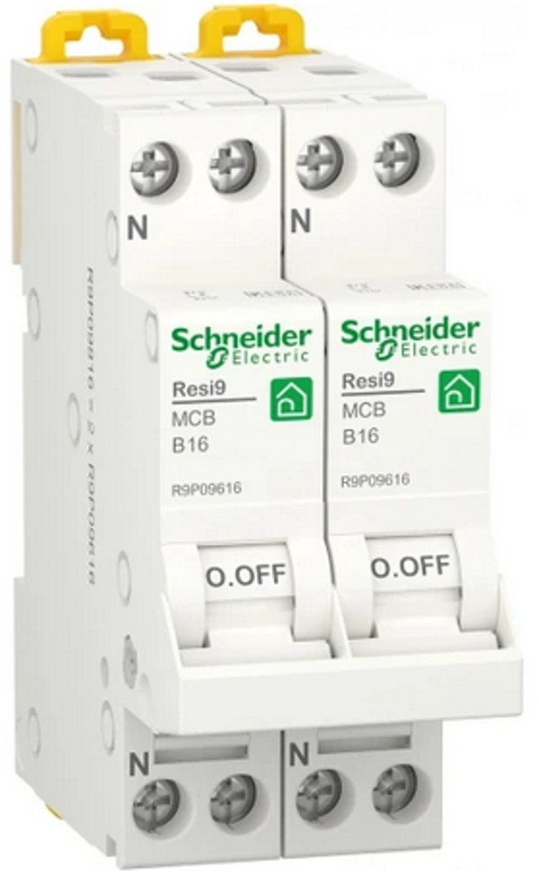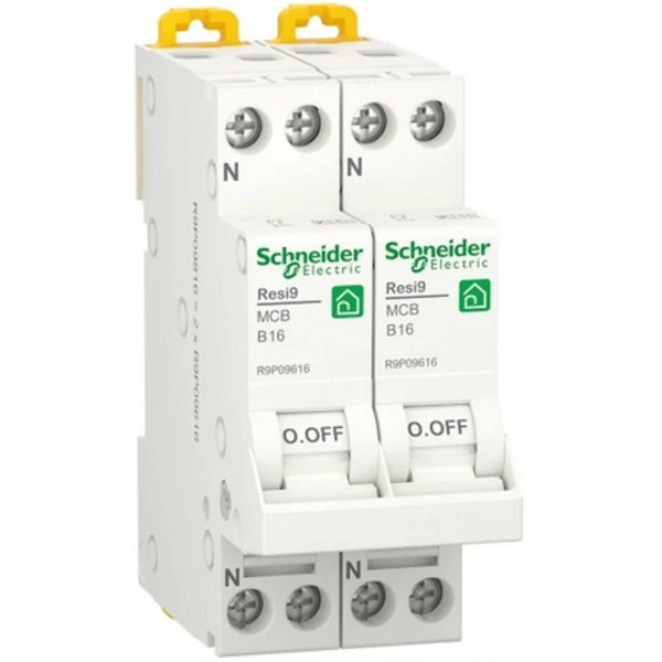 Deze installatieautomaat (Géén alomat of aardlekbeveiliging!!!) van Schneider Electric is een modulaire en betrouwbare schakelaat en voor vele toepassingen geschikt, waaronder het beveiligen van een elektrische innstallatie op kortsluiting. Met deze schakelaar kun je 1 groep van 16A (max 3560 W) op kortsluiting of overbelasting beveiligen. De afschakelwaarde met B-karakteristiek en 16A is de meest standaard en gebruikelijke waarde. De zogenoemde installatieautomaat past bij de gehele RESI9 serie. Vanwege zijn compacte afmeting, de strakke vormgeving, eenvoudige verwerkbaarheid, gewicht, kleur en sublieme kwaliteit, eenvoudig in de groepenkast te monteren naast andere normale installatieautomaat groepen. Voornamelijk het beveiligen van algememe groepen (let op! in combinatie met een aardlekschakelaar 40A/30mA) voor in huis, woningbouw, kantooromgeving en utiliteitsbouw, daar waar veiligheid volgens de norm 1010 en betrouwbaar materiaal een wens is.