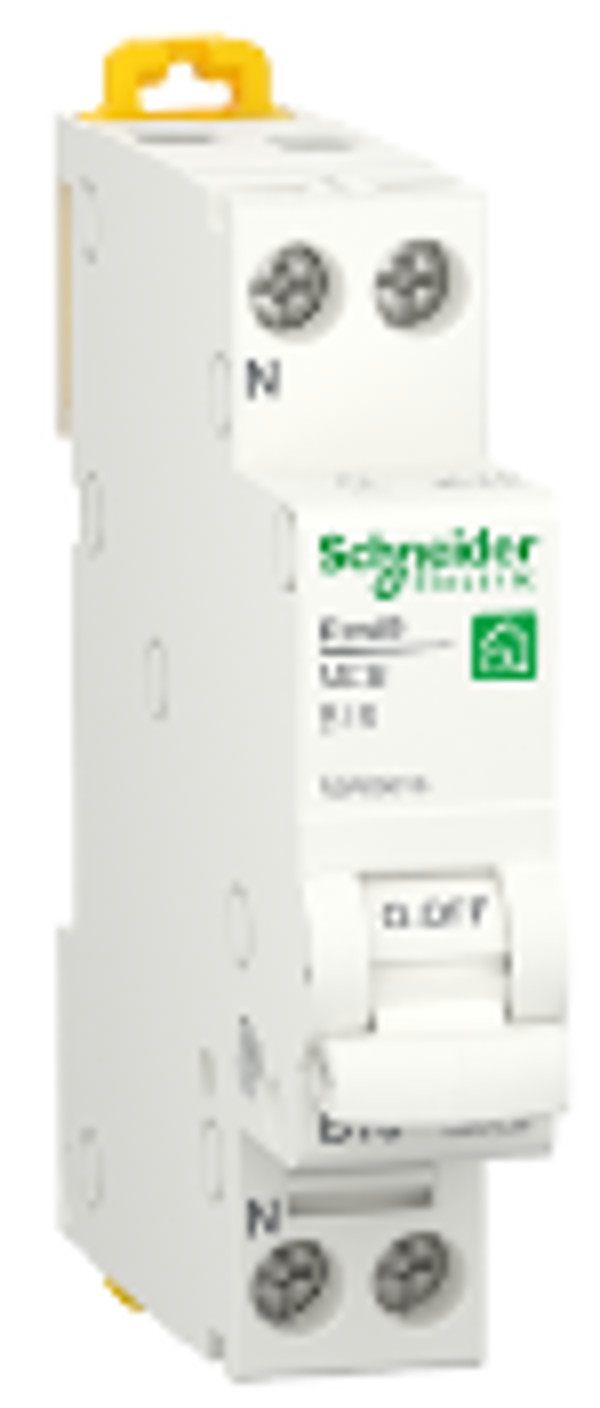 Deze installatieautomaat (Géén alomat of aardlekbeveiliging!!!) van Schneider Electric is een modulaire en betrouwbare schakelaat en voor vele toepassingen geschikt, waaronder het beveiligen van een elektrische innstallatie op kortsluiting. Met deze schakelaar kun je 1 groep van 16A (max 3560 W) op kortsluiting of overbelasting beveiligen. De afschakelwaarde met B-karakteristiek en 16A is de meest standaard en gebruikelijke waarde. De zogenoemde installatieautomaat past bij de gehele RESI9 serie. Vanwege zijn compacte afmeting, de strakke vormgeving, eenvoudige verwerkbaarheid, gewicht, kleur en sublieme kwaliteit, eenvoudig in de groepenkast te monteren naast andere normale installatieautomaat groepen. Voornamelijk het beveiligen van algememe groepen (let op! in combinatie met een aardlekschakelaar 40A/30mA) voor in huis, woningbouw, kantooromgeving en utiliteitsbouw, daar waar veiligheid volgens de norm 1010 en betrouwbaar materiaal een wens is.