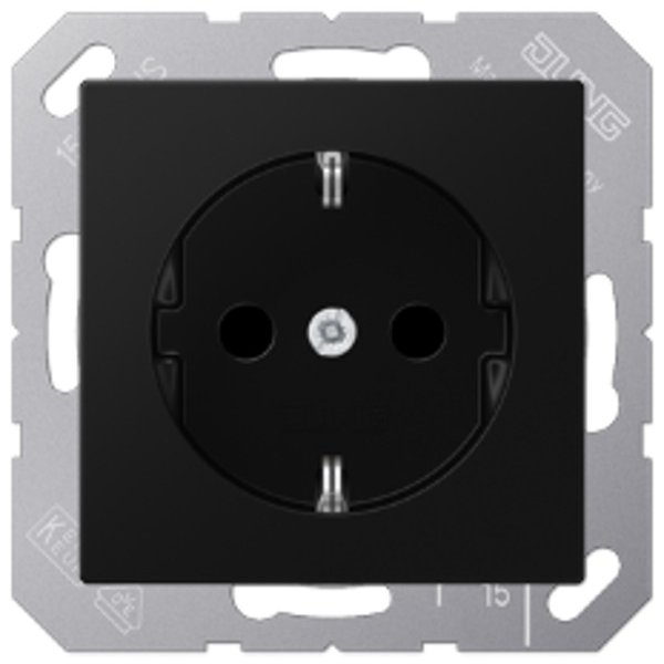 Wandcontactdoos type A1520NBFSWM - A550 serie - afmeting 55x55x30 mm (lxbxd) - 250V - 16A - randaarde - kunststof - halogeenvrij - thermoplast - krasvast - mat - grafiet zwart - inbouw hollewanddoos - doorlus - insteekklemmen massief tot 2,5mm2 - IP20