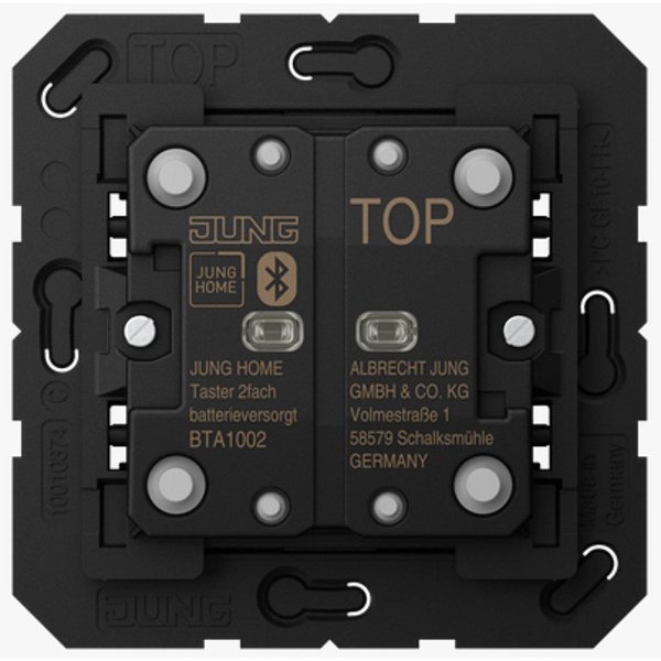 Met dit basisdeel, daar waar de intelligentie van het JUNG HOME systeem inzit, kun je een tweevoudig schakelwip opzetten en programmeren via de HOME app. Op dit zogenaamde basisdeel met intelligentie kun je een standaard schakelwip klikken en de gewenste functie via uw HOME-app van JUNG programmeren en instellen naar wens. Vanwege zijn compacte afmeting, de strakke vormgeving, eenvoudige verwerkbaarheid, gewicht, kleur en sublime kwaliteit, eenvoudig te monteren en programmeren. Voornamelijk luxe omgeving als domotica schakelmateriaal voor het schakelen van jaloezieen, rolluiken, markiezen, verlichting, ventilatoren in woning, huis, villa, bungalow, vakantiehuis, woningbouw, kantooromgeving en utiliteitsbouw waar draadloos, veilig en esthetisch schakelmateriaal een wens is.