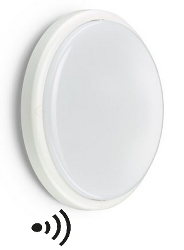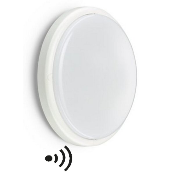 WL070V - buitenlamp - portieklamp - opbouwlamp - wit - 230V - 19W - 1700lm - lichttemperatuur 3000K (warmwit) (830) - diameter 285mm - hoogte 64mm - polycarbonaat - opaal - LED driver (aan/uit) via sensor - 3-polig steekconnector - exclusief aansluitsnoer - gewicht 0.870kg - Max 35 op B16A groep - IP65 - IK08 beschermd tegen vandalisme